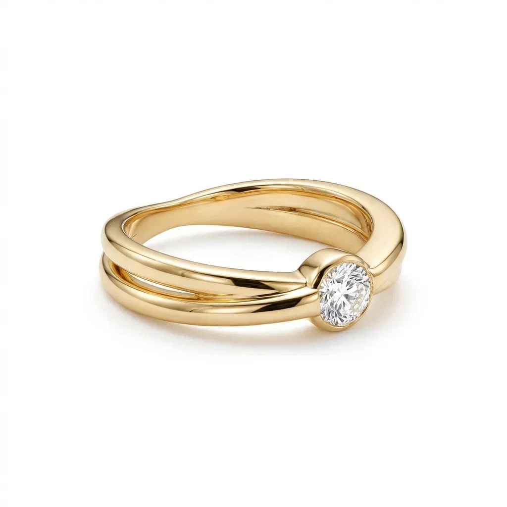 Cette création incarne le mouvement et la lumière avec une élégance rare. Façonnée en or jaune 18 carats, cette bague présente un design croisé où les courbes du métal précieux s’entrelacent harmonieusement, symbolisant l’union et l’infini. Le sertissage délicat de diamants taille brillant vient souligner la fluidité de l’anneau, capturant chaque rayon de lumière pour offrir un éclat subtil et sophistiqué. Pensée pour épouser parfaitement le doigt avec un confort absolu, cette pièce reflète le savoir-faire d’excellence et l’esthétique raffinée de la maison Orelle Joaillier.
