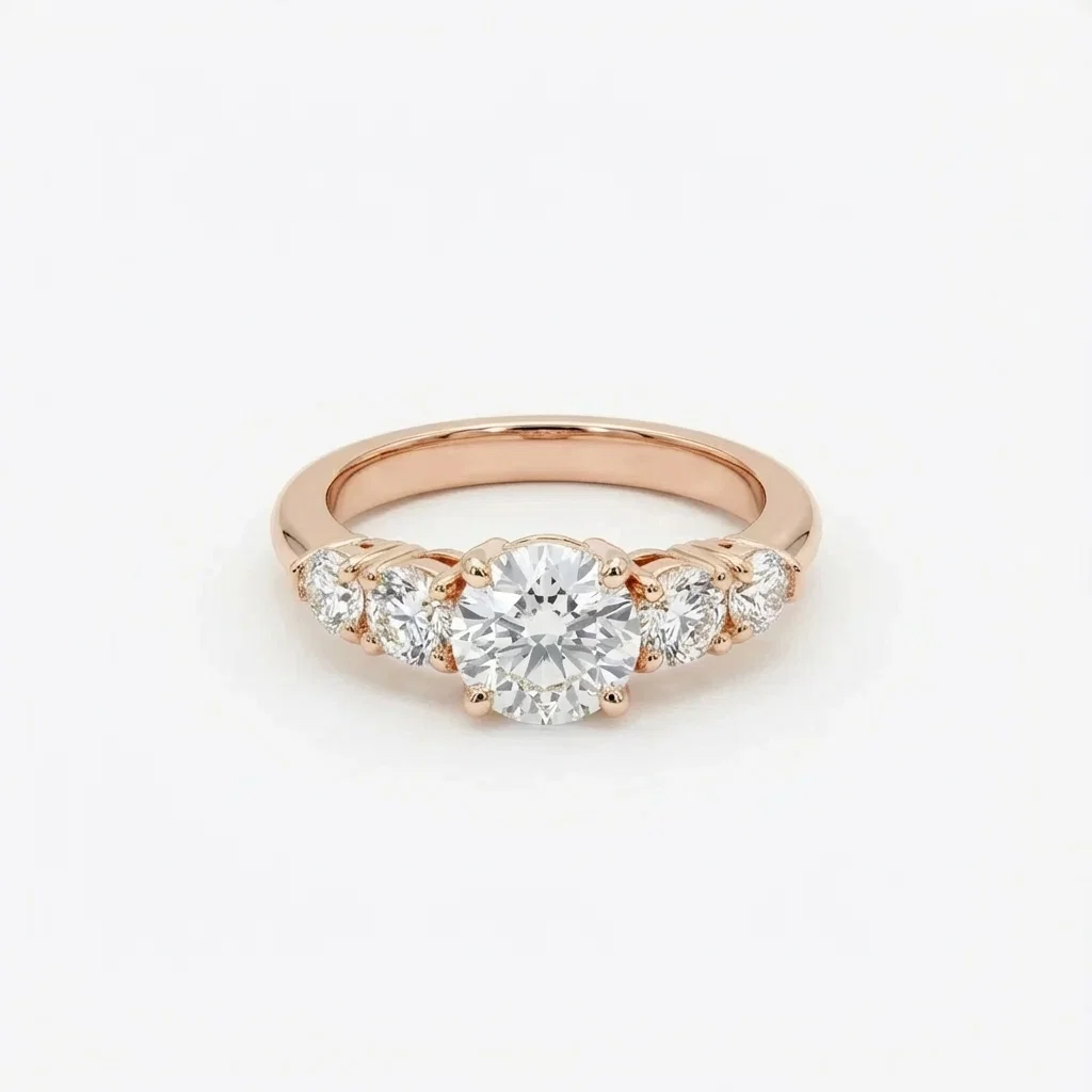 Bague de fiançailles en or rose 750 avec diamant central et diamants d’accompagnement