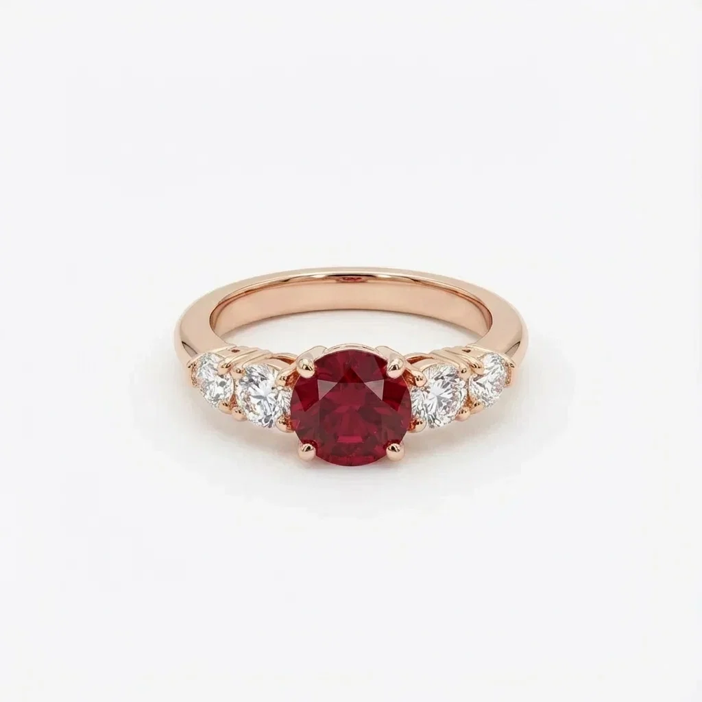 Bague de fiançailles en or rose 750 avec rubis central et diamants d’accompagnement