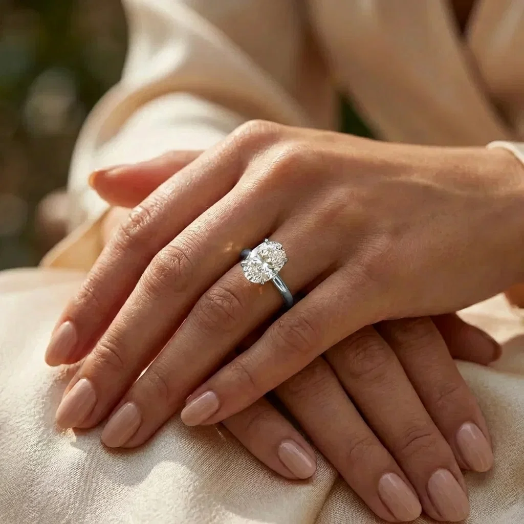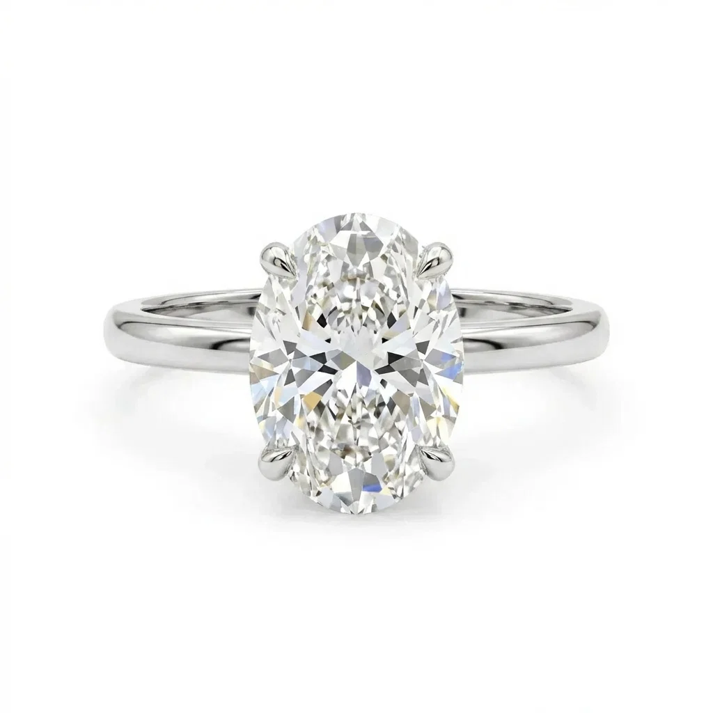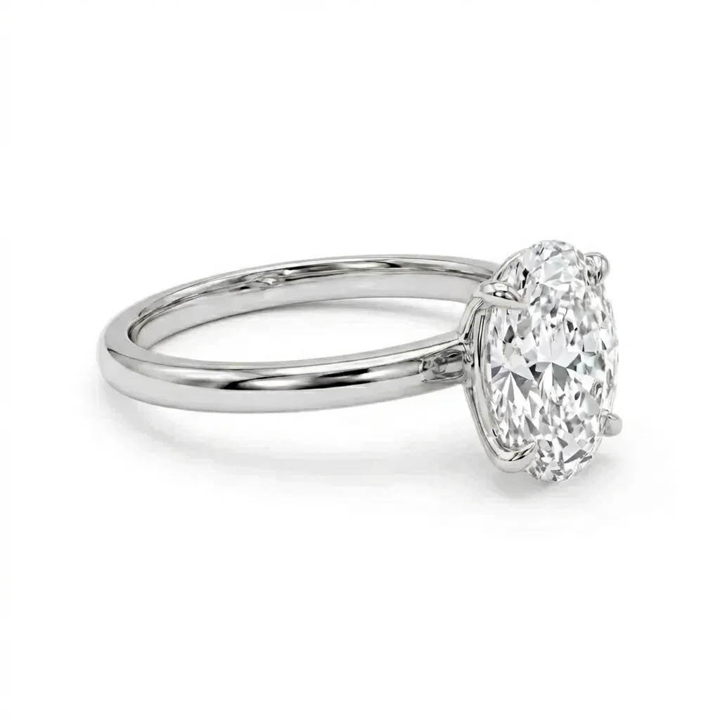 Bague solitaire or blanc centre diamant ovale