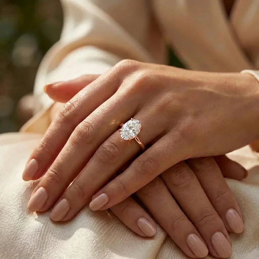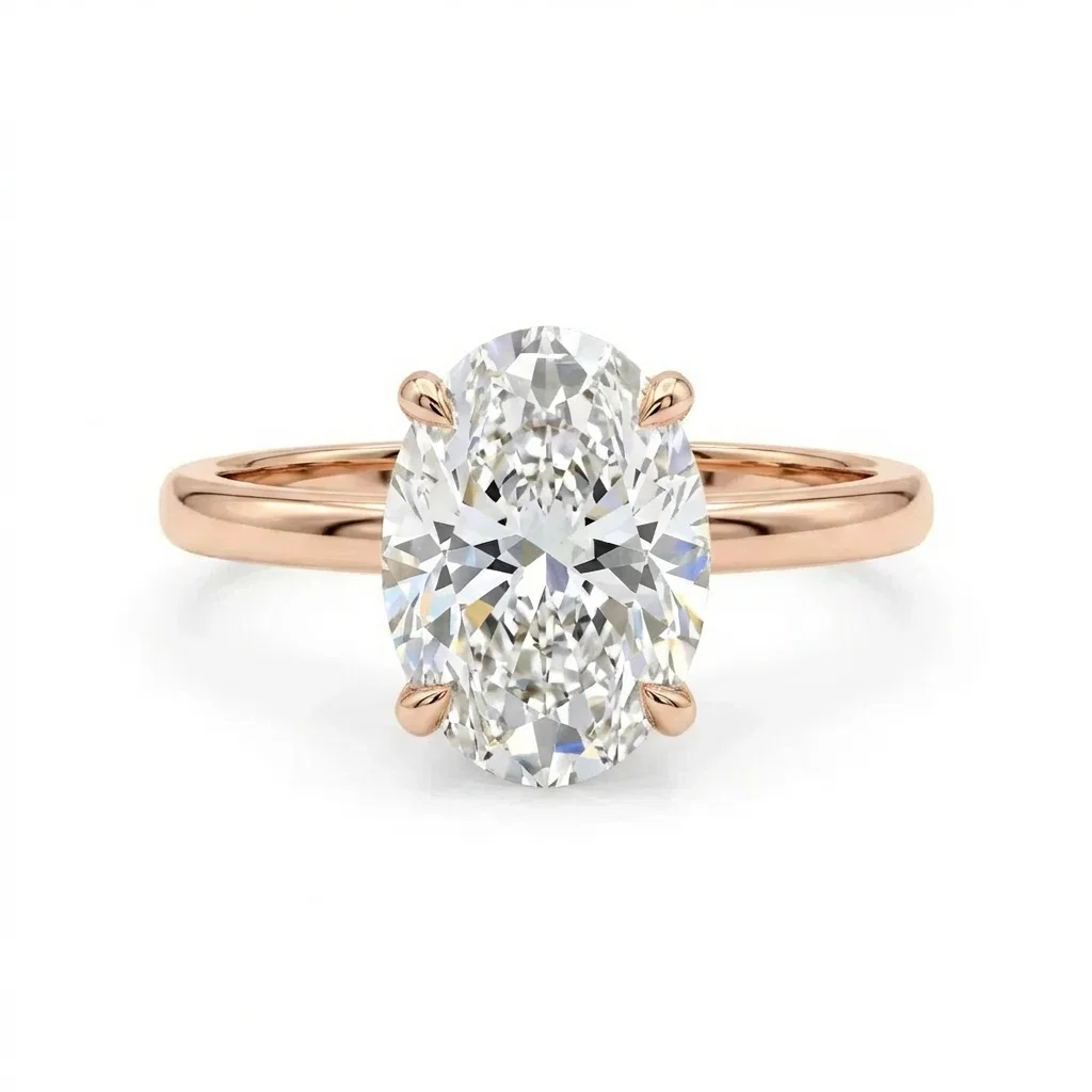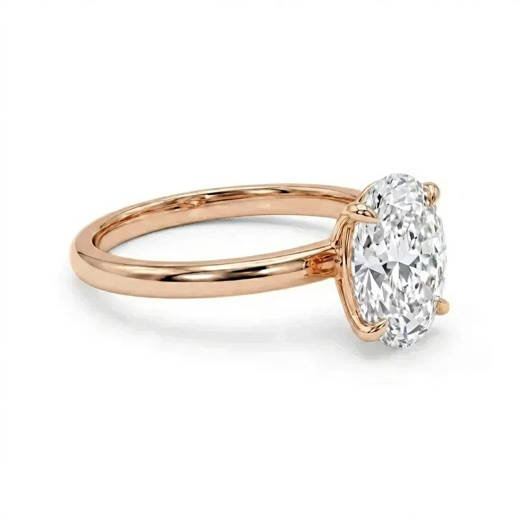 Bague solitaire or rose centre diamant ovale